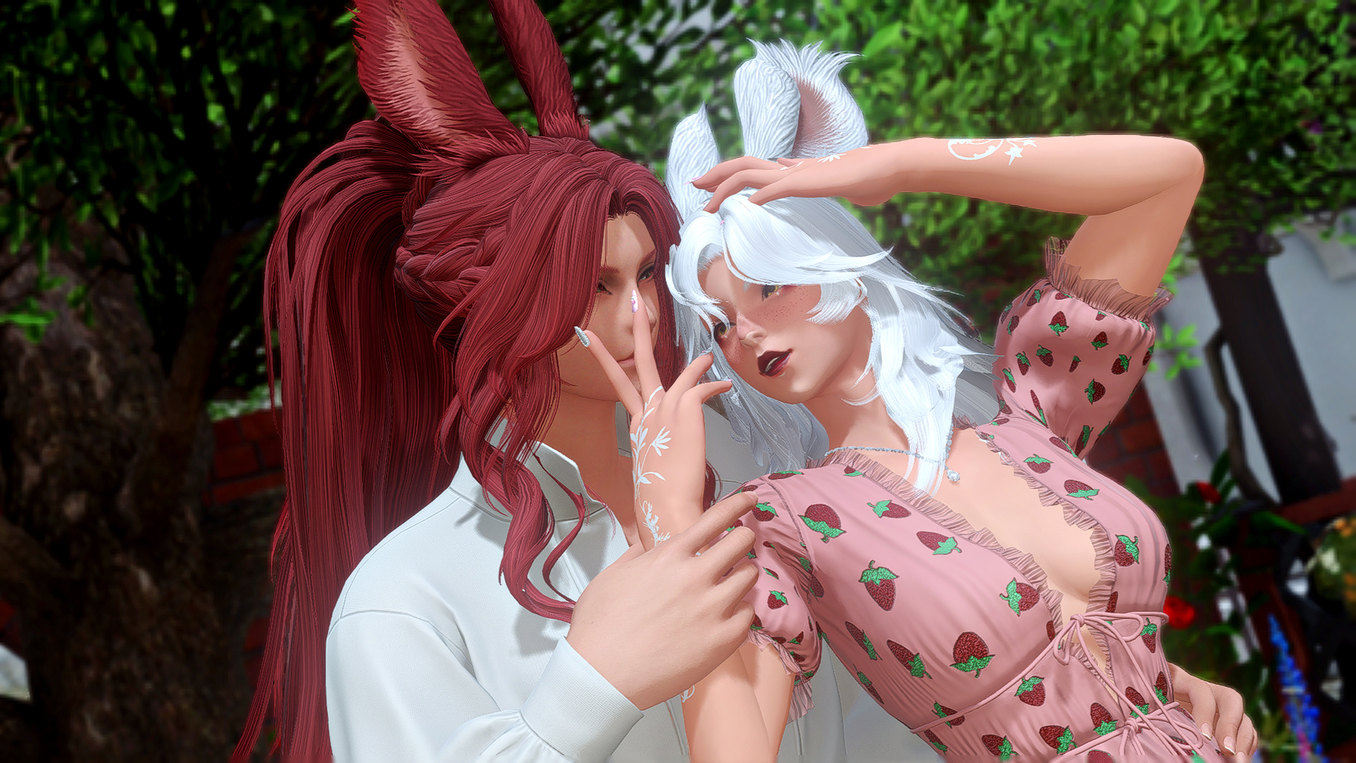 Their relationship birthed due to my friend's hunger for sapphic portrayal and my love for vieras, this made me want to explore possibilities for this race outside of the one bounded by the lore hence why their boundness to Kugane.