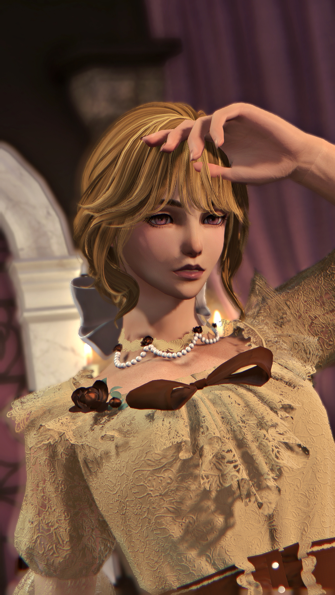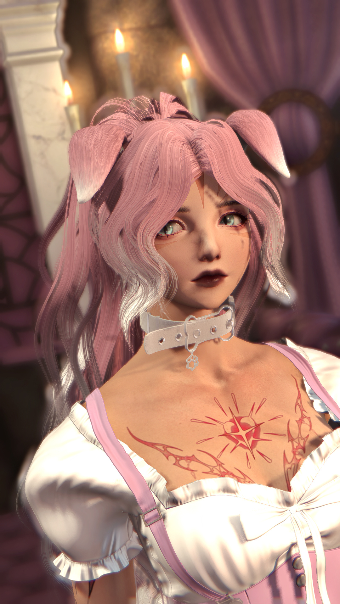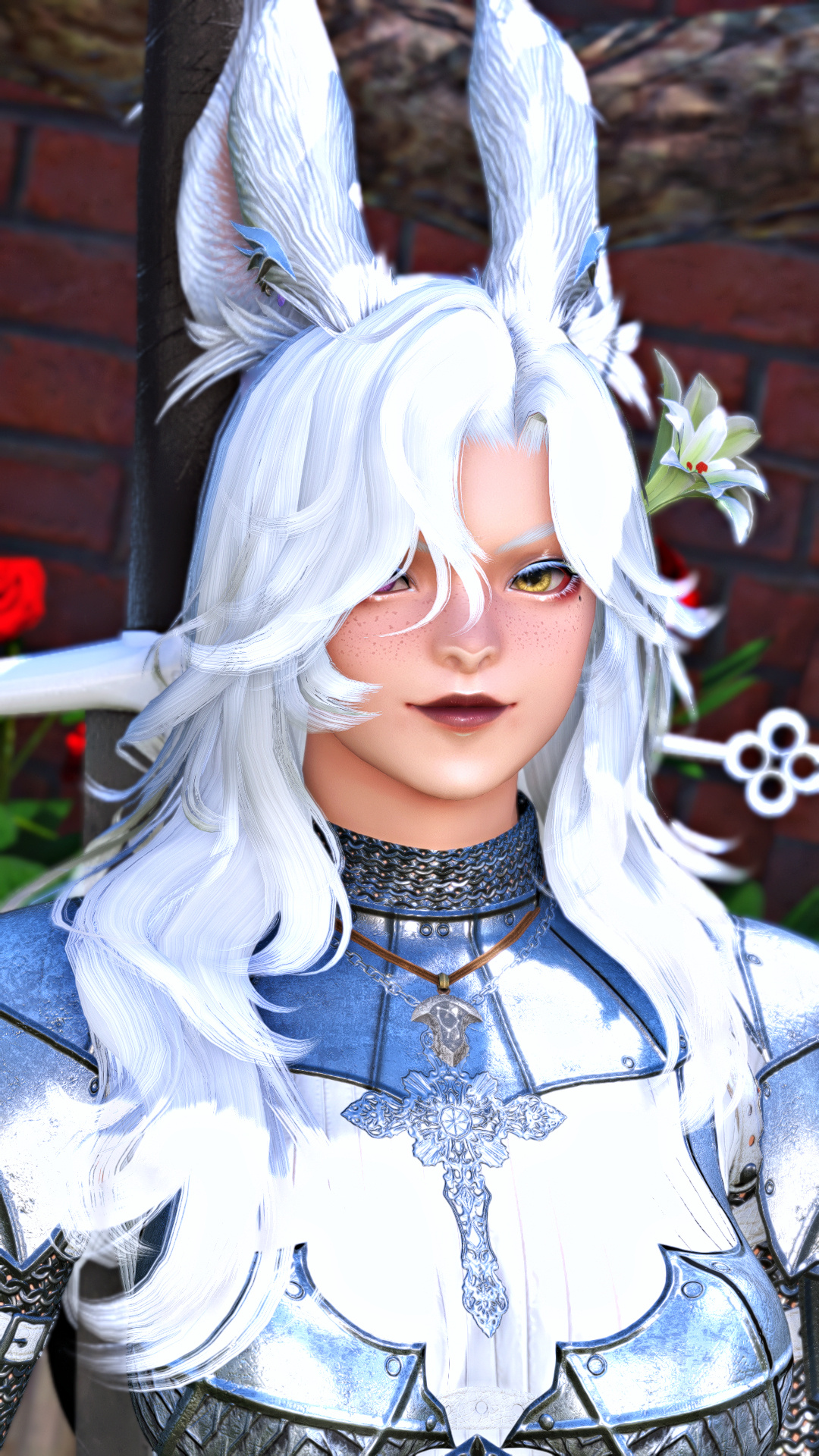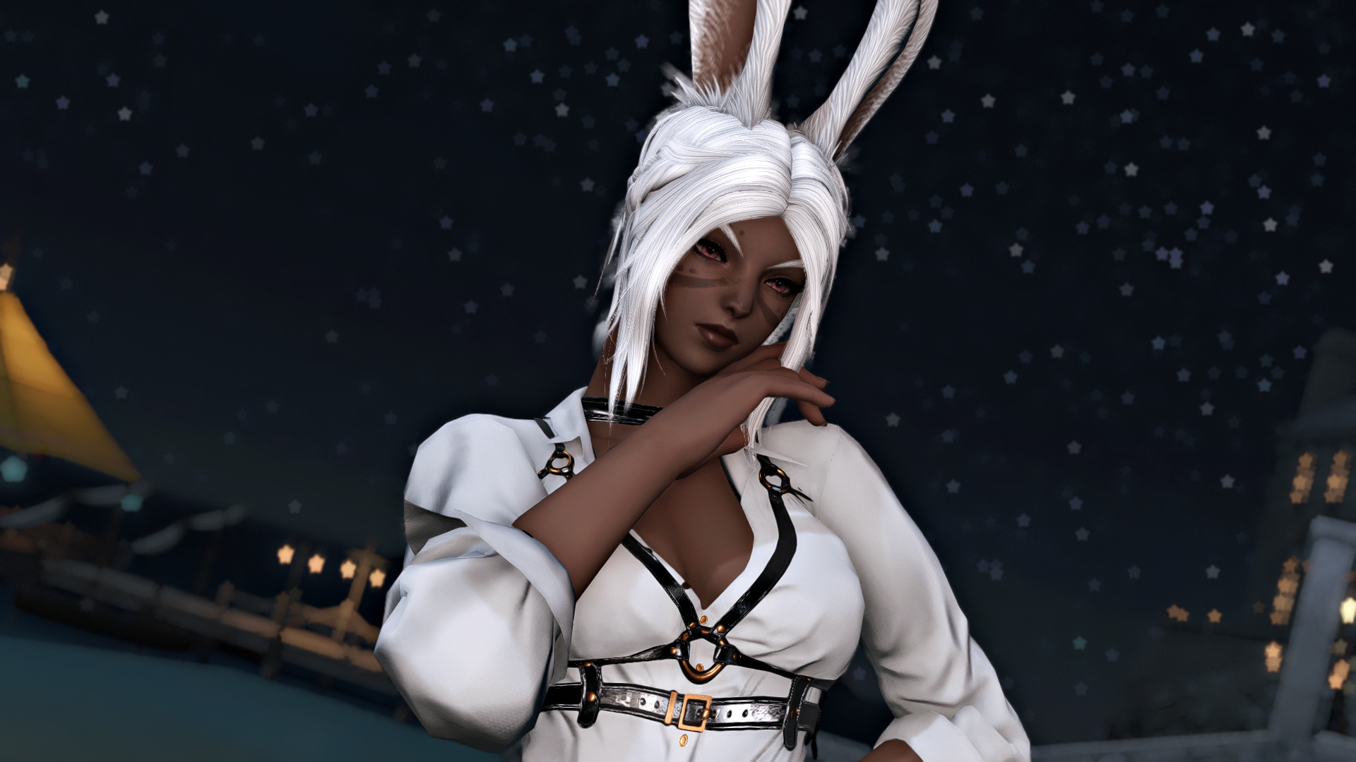 Through the slightly open window, a chill breeze was carrying the delicate rose, which was purifying the putrid smell of blood that had dripped from her chest hours earlier in the afternoon. The light rose-scented gust woke up Mordiel from her quiet, deep sleep. Lying on her back on a bed that felt comfortable, soft even, perhaps much too soft that it felt unfamiliar to her.Moving was an effort for Mordiel; shifting to her side was a struggle that was not common to her after waking up. She was in pain; the slightest motion reminded her of the still-open wound right at the bottom of her ribcage, causing quite a great ache. The pain was nagging her, but the discomfort of being under a ceiling that wasn’t hers was making all her strength run towards her legs.No Rozana in sight, no healer, not a soul, the hut was silent and unsupervised. Silent and felt like any item in the hut had eyes watching Mordiel, who was forcing herself to stand. Her legs trembled, and her teeth were piercing the skin of her lips. As she pushed the door open, the moonlight welcomed her, shining its light upon the whole village, which felt empty as the population was busy; the yellowish and warm lamplight beaming from the huts was confirming that.She gave a last look at the roses guarding the entrance. She was glaring at them for a solid minute, and for a moment, it made her forget the pain, as if she was finding comfort in the cardinal shade of their petals. She shook off her daze by grabbing a few of them with her..Back in her hut, Mordiel sat down and took the time to check up on the bandage she was wrapped in, surely by Rozana. She felt thankful that Rozana felt thoughtful even after whatever could happen. Mordiel’s memories of the day before were shattered, and any recollections were like images behind a fog. What was mainly nagging her were Rozana’s words, nagging like vultures around a carrion.Srebro would not come to see her. Srebro was somewhere she had never heard of. Srebro left her. He was far, and went to a land that didn't sound like anything near that, which the overcurious Srebro would explore between each meeting between them. Mordiel hated not knowing, being left with, despising being left behind.With the roses she brought and lilies she plucked from around her hut, she began to prepare. Crushing petals with her mortar and blending with tincture that could be found in quantity at her place. Becoming a pink paste, she applied the freshly blended mixture to her purely white hair.Once done, she was almost unrecognizable, familiar yet altered. Her new hair colour was like a signature under a contract, a gesture only committed in case of departure. Mordiel has chosen to leave the village, still weakened; she did not want to stay anyway.Weak, she did not go back on her decision and departed without a word, not even to her best friend or the chief. Unsure if she would ever return, uncertain if she would survive the adventure, unsure of the worth of her purpose. But she knew the woods, on the road, she took time to gather herbs and roots that would help her; the moss and trees were offering nice resting places for her overfatigued condition. In those moments of breath catching and easing her pain, she was thinking how she shouldn't be the one feeling that pain. She was only recalling the blood pond that was hers, the discomfort of thinking what led to it, and it was making her whole body shiver.The woods were deep, but not for a viera talon. She quickly reached the dry roads that led to the city she heard from Srebro. He didn't like to just wander in the woods, and often when they were reunited, he talked about that vast, dusty, and beige city named Dalmasca. From afar, she was starting to see it. The city, as she reached it, was lively, noisy, and heavy to breathe in, a shocking opposite of a village in the woods. Surprisingly to her, it was full of various-looking people, but her biggest surprise, which should be ironic, was the numerous presence of vieras. When they looked at her, they understood by her gown that she had just made the very decision. One of the leporit fellows who listened to her advised her to meet with a woman who knew ways to see Eorzea. That woman was Orkid, an Au Ra with horns black as night, her lips painted in the same shade, and her skin surprisingly pale for the region she settled in. She accompanied Mordiel, connected to Dalmasca, and helped her to take the vessel that would go to the borders of Thanalan.Here starts ARR for Mordiel…